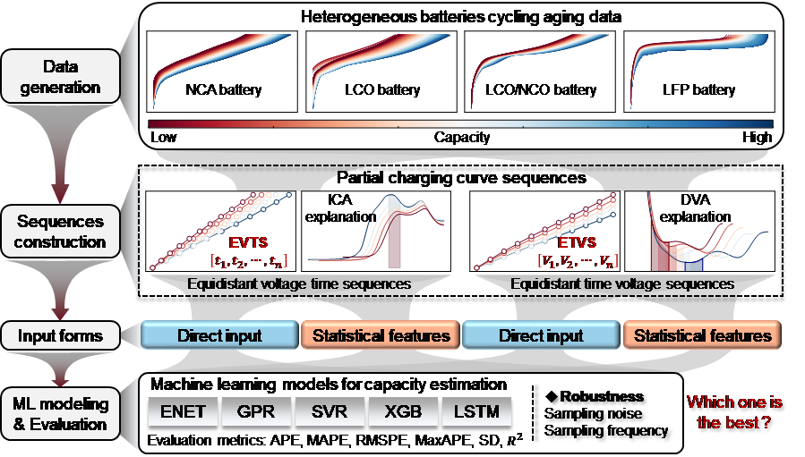 图2.基于部分充电曲线的数据驱动电池容量估计的对比研究