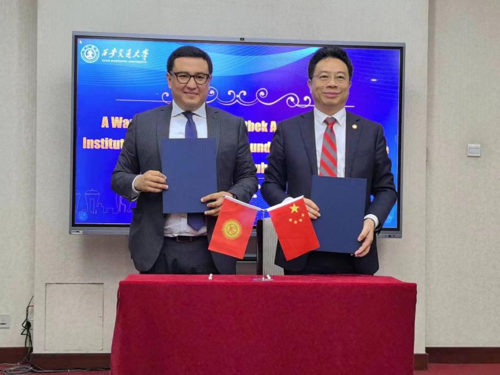 日前,吉尔吉斯斯坦总统下属国家战略研究院院长卡纳特别克·阿吉兹博士率团访问西安交大并签署合作备忘录。西安交大校长助理单文华会见吉尔吉斯客人并代表学校相关机构签署备忘录。吉尔吉斯共和国地缘政策与战略研究院院长卡什莫娃·艾利维拉,研究院研究员、西安交大留学博士生阿米娜;西安交大社科处处长梅红、新闻与新媒体学院院长兼党总支书记马忠、副院长孙鹤立、杨琳教授,交大出版社党委书记、社长李重,总编秦茂盛,国际处副处长雷艳君,等参加会谈。