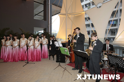 随后,中美学生带来精彩文艺演出。西安交大校民乐团、城市学院合唱团和内布拉斯加大学UNO爵士乐队轮番献艺。