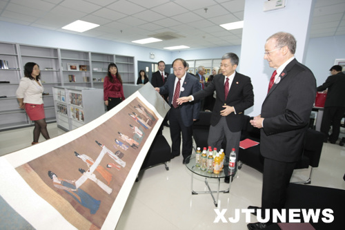 4月21日下午,西安交通大学—内布拉斯加大学美国交流中心成立仪式在逸夫外文楼美国交流中心隆重举行。西安交大校长郑南宁、内布拉斯加-林肯大学校长Harvey Perlman、西安交大党委副书记宫辉及内布拉斯加大学交流团成员等出席成立仪式。仪式由西安交大副校长宋晓平主持。