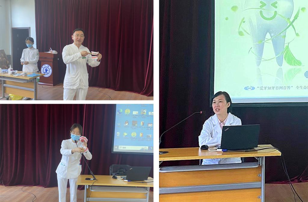 口腔医院第一门诊部代泉副主任和贺慧婷护士分别介绍了正确的刷牙方法,牙线、牙间隙刷和冲牙器的正确使用方法,嘱咐老同志:遵从医嘱定期查,牙周异常早发现,口腔保健不能少,定期洁牙会更好。