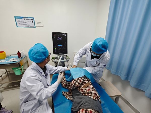患者韩先生因左侧面部间断性疼痛8年,近期疼痛加剧,在多方了解后,韩先生前来西安交通大学第二附属医院中西医结合病院就诊。入院时患者左侧面部疼痛明显伴有针刺感,存在触发点并伴有张口受限。因长期遭受三叉神经痛的折磨,韩先生曾尝试过多种治疗方法但效果均不理想,严重影响了生活质量。中西医结合病院的安鹏副主任医师和吴仲恒副主任医师在对患者进行详细检查后,制定了在超声引导下进行针刺蝶腭神经节联合上颌神经阻滞的治疗方案,这也是中西医结合科首次实施针刺联合神经阻滞技术。