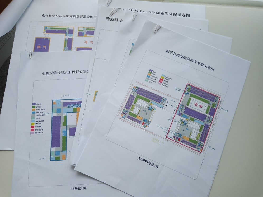 实验室与资产管理处创新港攻坚队的成员经过连续奋战,跑现场、查图纸、核数据,对创新港楼群巨构所有功能性房屋的位置、类型、用途进行梳理完善,整理出清单并在图纸上对分配给研究院的功能性房屋位置逐一进行了标注,全力保障研究院二次装修工作顺利开展。