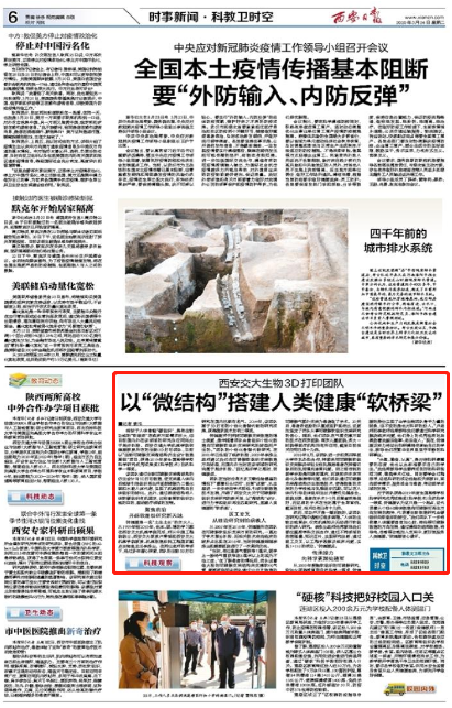 团队在当时没有太多文献经验借鉴的情况下“摸着石头过河”,反复“试错”,扎实推进,一步步走向学术前沿、引领生物制造技术发展,开辟了西安交大关于可降解软组织支架研究的新天地,以“微结构”设计,进行力学和组织再生匹配研究,搭建人类健康的“软桥梁”。