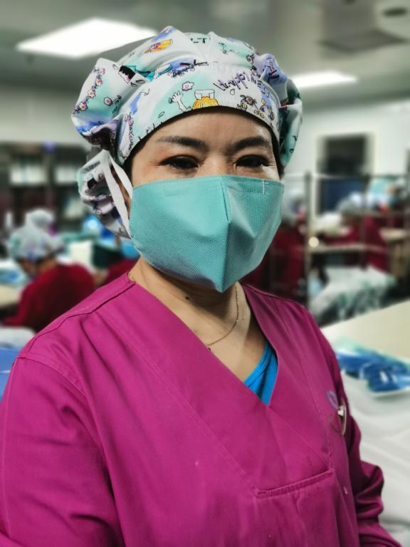 新冠肺炎疫情爆发后,司慧君以一个老党员的责任感和前瞻性,果断决定自制口罩。雷厉风行的做事风格使得她不给自己一点点迟疑的时间,和值班的同事一起在网上寻找口罩制作视频,手工缝制,反复试戴,一个下午的时间口罩的模板已经完美呈现。她的想法得到院领导及社会爱心人士的大力支持。在制作口罩的初期,由于大家没有缝纫经验,她毫不犹豫地将有着多年缝纫经验的妹妹请来加班加点制作口罩、自费购买缝纫线……从口罩制作开始的日产200只到日产2300只,起初她不断尝试,反复改版,制作口罩的第二天,医院将终版口罩送往第三方检测机构进行检测,可喜的是司慧君带领的团队手工制作的口罩通过了GB 19083-2010《医用防护口罩技术要求》和YY0496-2011《医用外科口罩》标准。也许对于一个制作口罩的生产线,专业的设备制作出这种高要求的口罩并不难,但是对于这样一个护理专业团队来讲,司慧君同志和同事的无数次努力和尝试最终制作出符合要求甚至高于要求的口罩是令人钦佩的。