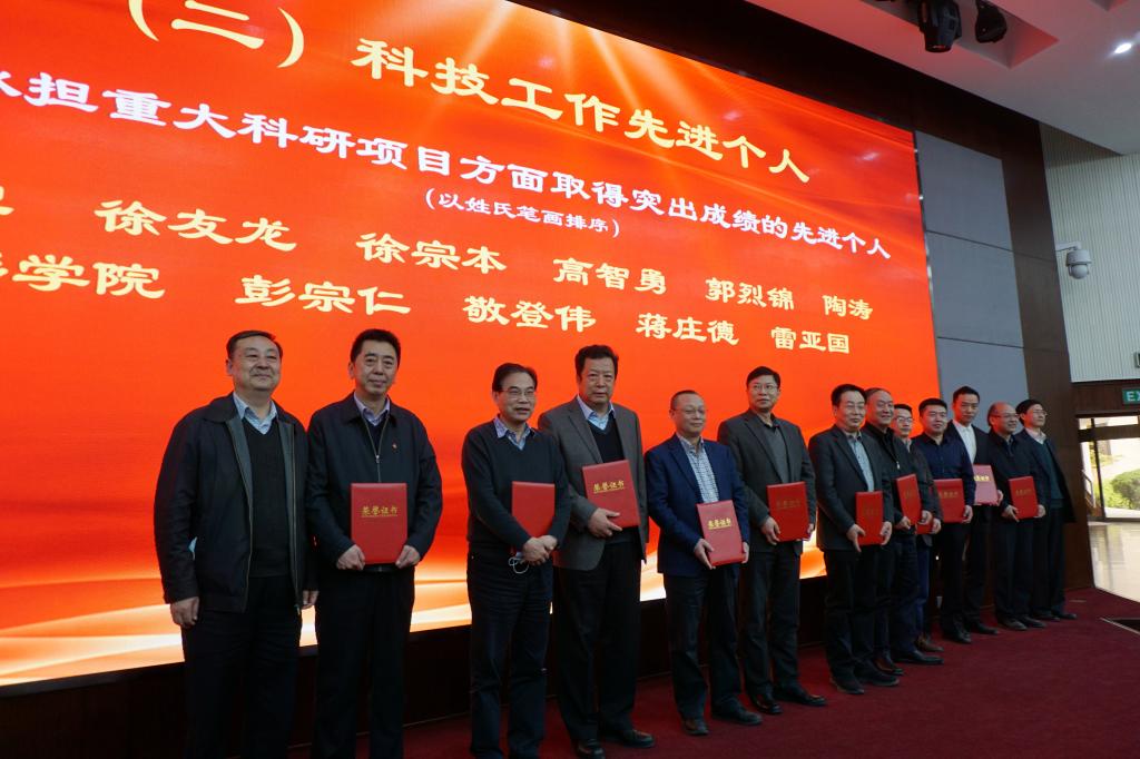 副校长王铁军作2019年科技工作总结。他介绍,在国家级奖项方面,2015—2019年,学校获奖总数在全国高校名列前茅。2018—2019年有5篇《科学》论文,其中2019年有3篇。SCI论文数全国排名前列,发明专利从2014年的584项增长为1000多项,科研基地从2014年省部级以上基地70多个,增加到如今的130多个,基本实现翻倍增长。