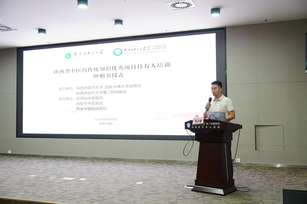 6月22日,中医药传统知识优秀项目持有人学术交流暨《当代三秦中医魂——长安医学研究丛书》之《长安医学·方技拾遗卷》赠书仪式在陕西中医药大学第二附属医院举行。陕西中医药大学原校长、全国教学名师、二级教授、《长安医学研究丛书》总主编周永学,陕西中医药大学第二附属医院副院长杨永康,西安中医脑病医院副院长杜晓刚,北京中医药大学孙思邈医院副院长刘晓峥,陕西省中医医院陕西省名中医韩世荣,陕西中医药大学王海芳教授、何养宁教授,西安交大出版社副总编辑秦茂盛、医学分社主任李晶以及陕西省中医医院、西安市中医医院、中医药传统知识优秀项目持有人出席会议。