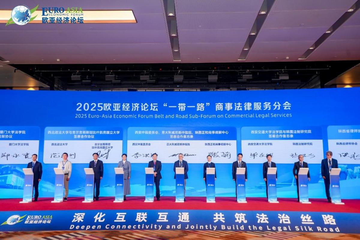 23日下午,应陕西省司法厅邀请,韩英洙、单文华共同出席了“2025欧亚经济论坛—‘一带一路’商事法律服务分论坛”,并在论坛上联合发布了双方签署的合作协议。