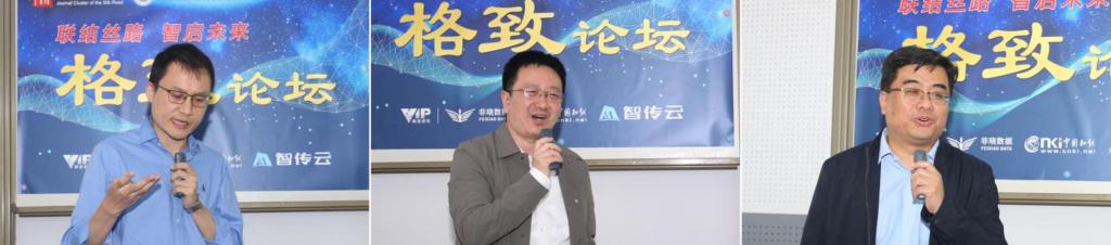 《纺织高校基础科学学报》编辑部主任武晖、陕西理工大学期刊中心主任许琼、西安交通大学期刊中心医学期刊部总编辑卓选鹏分别作为刊群加盟期刊代表致辞。武晖主任表示,丝路刊群作为高水平的学术交流平台,为专业期刊提供了一个学习交流的机会,期待通过加强协同合作,实现资源共享、优势互补,有效提升期刊的学术质量和国际影响力,共同讲好中国科研故事。许琼主任指出,刊群成功为成员期刊搭建起一座便捷、高效的学术交流桥梁,有效促进了资源互通与学科融合,期待未来能与各成员单位一道,依托这一优质平台,共同探索学术期刊高质量发展的新路径与新模式。卓选鹏总编辑在致辞中回顾了“格致论坛”自创办以来的发展历程,对丝路刊群从初步构建到今日的蓬勃发展深感欣慰。他特别鼓励在场的青年编辑要珍惜平台机遇,积极投身学术出版实践,不断提升专业素养与创新意识,争做新时代期刊发展的中坚力量。