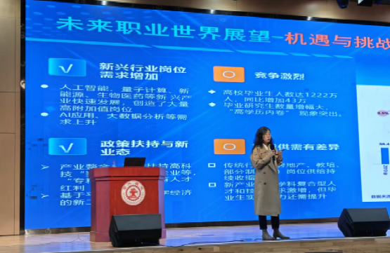 作为2025级新生养成教育系列讲座的组成部分,讲座围绕当前就业形势、学校相关支持政策以及学生自身发展路径,帮助同学们系统梳理未来发展路径,引导大家及早开展职业生涯规划,确立个人奋斗目标,为成长发展奠定坚实基础。