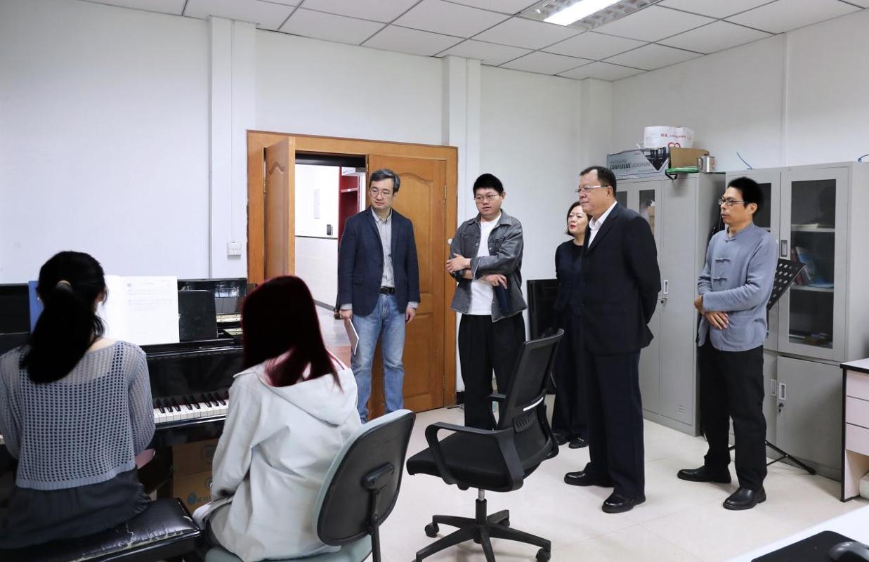 在音乐教育中心,卢建军观摩了音乐教学现场,与中心教师代表从音乐鉴赏的“直击心脏”之美,到音乐文化的深厚底蕴,再到音乐与脑科学等前沿科技的创新融合等方面进行了深入探讨。卢建军对音乐教育中心在普及艺术教育、提升学生人文素养方面所做的工作表示肯定。他指出,美育是构成学生全面发展的重要支柱,对于培养拔尖创新人才具有不可替代的作用。交通大学有着深厚的美育传统,要进一步加强美育工作,让“美的滋养”渗透到育人全过程,为培养德智体美劳全面发展的社会主义建设者和接班人筑牢人文根基。