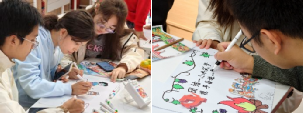互动环节中,同学们围绕“区域发展成就”“青春使命故事”“民族特色文化”等主题进行绘画创作,作品情感真挚、内涵丰富,成为民族团结的生动见证,来自不同民族的同学介绍锡伯族、蒙古族、哈萨克族等民族特色文化,展现了中华民族多元一体的绚丽图景。随后,大家在中国结编织体验中感受中华传统文化的魅力,一根根红绳串联起彼此的心意,凝聚成团结的象征。