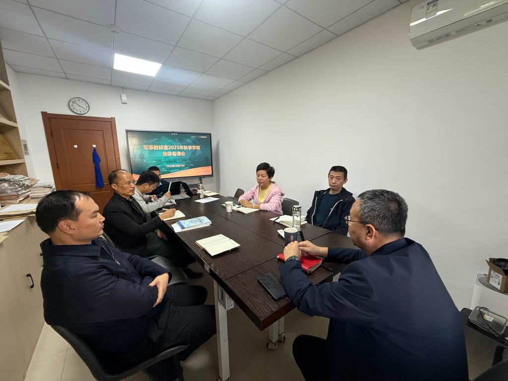 为进一步加强人工智能赋能教学,提升教学质量,促进教师之间的交流与合作,10月16日下午,军事教研室全体教师举行本学期集体备课会。会议由教研室主任问鸿滨教授主持。
