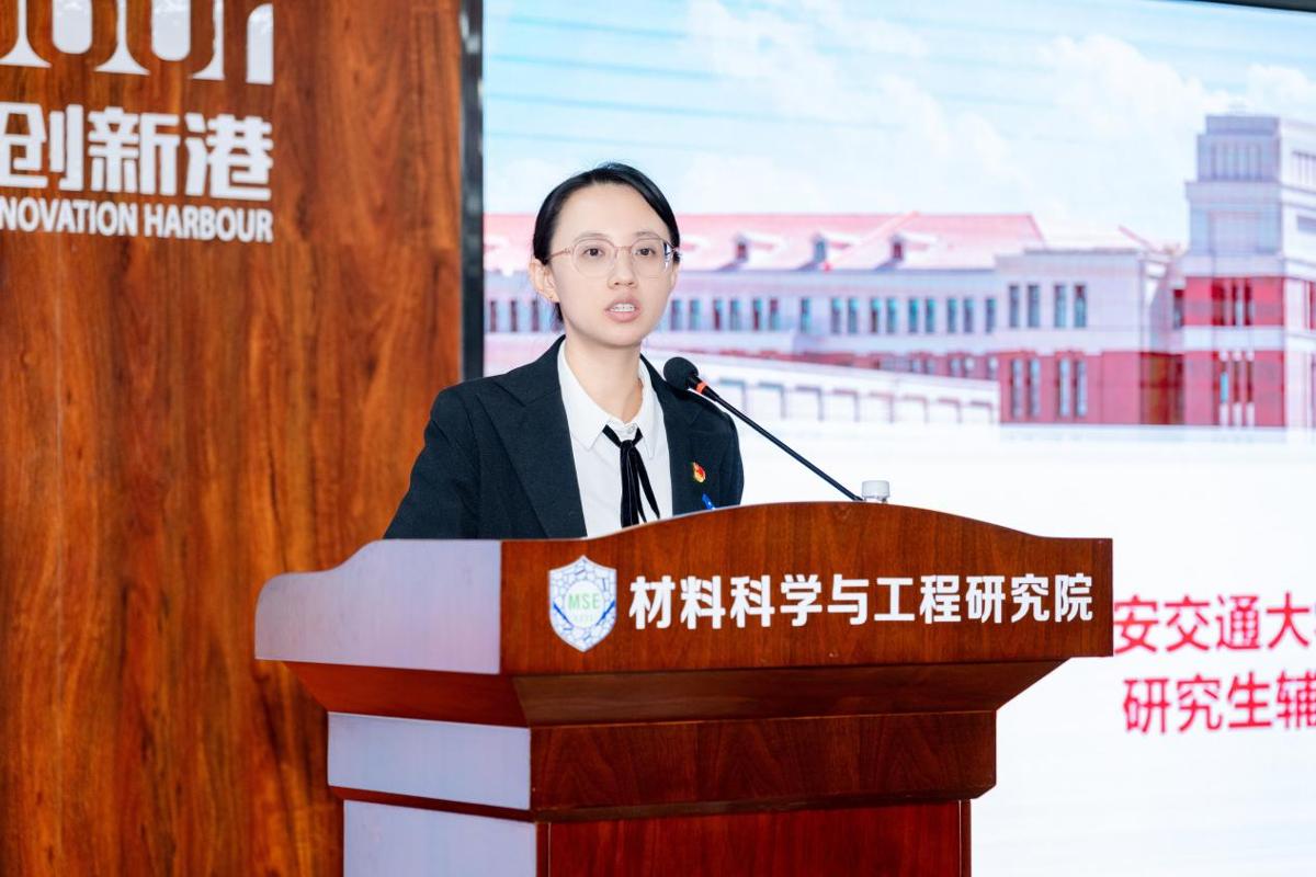 孟建芳勉励全体研究生传承西迁精神,勇担时代使命,面向同学们提出三点期望:一是要坚定理想信念,做西迁精神的新传人,将个人理想融入国家发展大局;二是要勇担时代使命,立足材料学科特色,致力于解决“卡脖子”技术难题,为实现科技自立自强贡献力量;三是要发挥桥梁作用,研究生代表要密切联系同学,积极建言献策,服务同学成长成才。