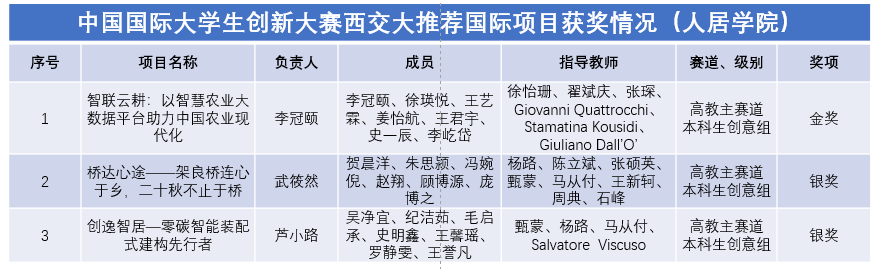 “智联云耕”项目获得中国国际大学生创新大赛国际推荐项目金奖,指导教师徐怡珊表示:“项目过程中,着重引导学生构建融合多源传感数据的农业决策模型,团队在开发全链条追溯系统时,突破了异构数据融合与边缘计算节点部署等技术难点,建立了从田间到市场的数字化闭环。这次获奖体现了同学们在复杂系统架构设计与农业场景理解上的显著进步,也验证了问题导向、技术实现与产业验证这一创新培养模式的有效性。而跨学科协作与产学研深度融合是项目成功的关键所在。”“创逸智居”项目团队在甄蒙、杨路等教师指导下,针对传统建筑行业痛点,研发零碳智能装配式建筑技术,4天完成主体施工、成本控制在2000元/m2,项目成果获央视报道。甄蒙老师表示:“比赛中需要引导学生从行业视角思考问题,让学生明白创新既要技术领先,也要兼顾经济性与可推广性。”竞赛过程中,这种“技术+思维+责任”的全方位培养,让学生在竞赛中收获的不仅是奖项,更是综合能力的全面提升。